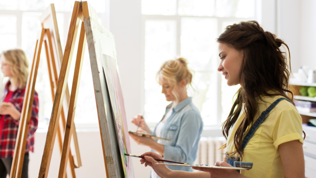 In our virtual gallery, you can choose the theme or painting you want to create. It's an interactive experience where our artists will guide you step by step during the creation of your artwork.